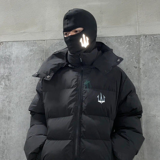 REFLECTIVE LOGO BALACLAVA ZIP HOODIE - BLACK